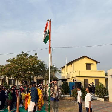 The celebration began on a dignified note with the Flag Unfurling and the National Anthem, instilling a strong sense of unity and national pride among students and staff. A disciplined and well-coordinated Parade by students of Classes 6 to 9 reflected commitment, responsibility, and reverence for the Constitution of India.