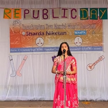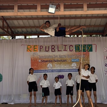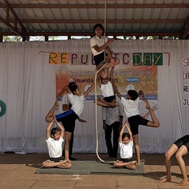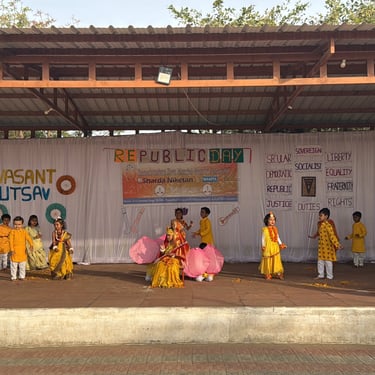 The program featured meaningful presentations including National Symbols, Drama, and a powerful Act on the Life of Dr. B. R. Ambedkar, highlighting constitutional values, equality, and social justice. Confident speeches by students of Classes 3, 5, 9, and 10 showcased awareness, expression, and leadership skills. Traditional and artistic performances such as Veena Pustak Dharini and Aai Re Ritu Vasant celebrated the essence of Vasantotsav, while Yogasan and the thrilling Rope & Pole Mallakhamb displayed discipline, strength, and physical excellence.