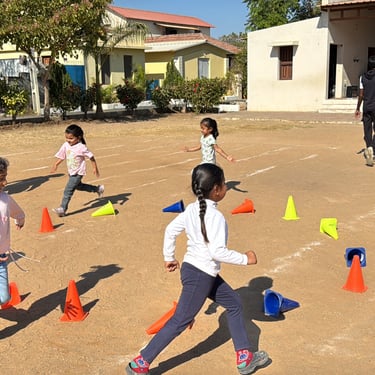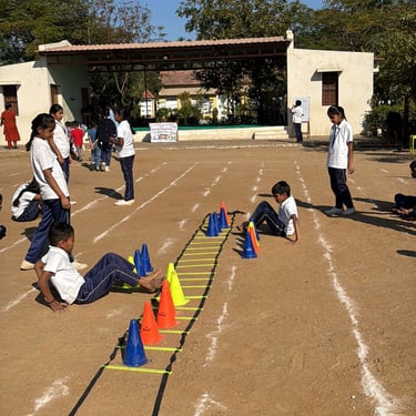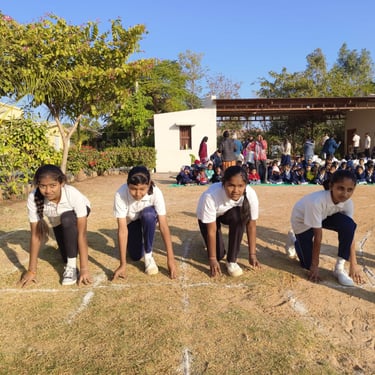 Nursery to UKG enjoyed fun races and activities, while Classes 1 to 4 showcased their skills through balanced and task-based events. Students from Grades 5 to 10 participated in Surya Namaskar, field events, chess, and running races, demonstrating strength, focus, and teamwork.
