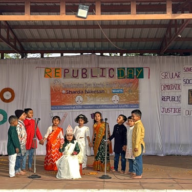 Sharda Niketan School celebrated India’s 77th Republic Day along with Vasantotsav with immense pride, enthusiasm, and cultural vibrance. The occasion beautifully blended patriotism, tradition, and youthful energy, creating an atmosphere filled with respect for the nation and joy of spring.
