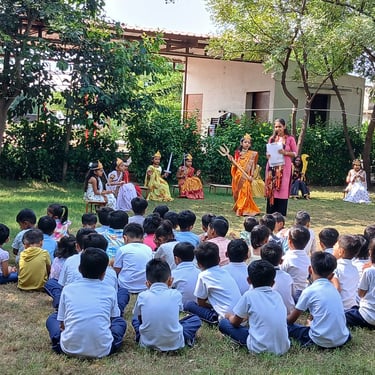 The Art & Craft Fair was celebrated at the school level in Sharda Niketan with great enthusiasm. Students showcased their talents through various artistic displays and traditional crafts. They also played musical instruments like Morchang, Jodiya Pava, and Ghado Gambelo, which added a cultural touch to the event. The fair reflected the rich heritage of art and music, highlighting the creativity and traditional skills of the students