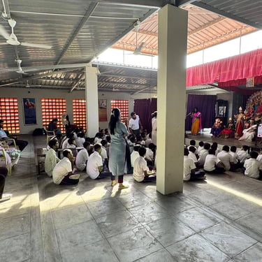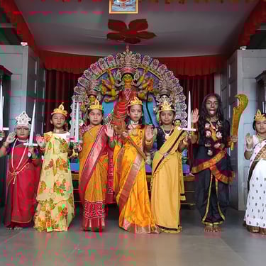 Durga Puja Celebration 2025 at Sharda Niketan School was a spiritual and cultural experience that filled the atmosphere with devotion and joy. The celebration symbolized the victory of good over evil and the divine power of Maa Durga.