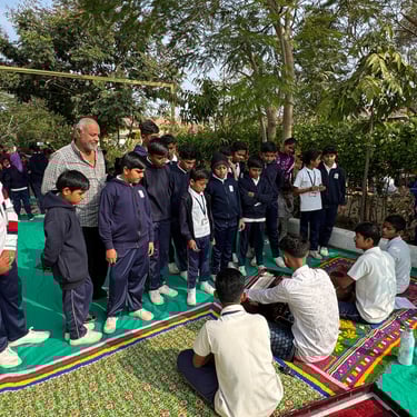 Along the Primary School Road, students participated in glass painting, canvas painting, leather work, tie and dye, paper mâché, and performances of Kutchi folk music using traditional instruments like Gado Gambelo, Morchang, and Harmonium.