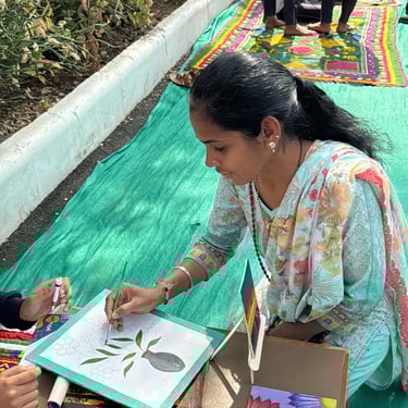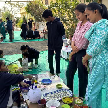 The Green Garden hosted fabric painting, Jal Sanji, Bharatkam, mud mirror work, and eco-friendly crafts made from leaves.