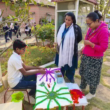 Swamiji Park featured activities such as woollen thread craft, origami, collage work, paper crafts, spray painting, and a puppet show.