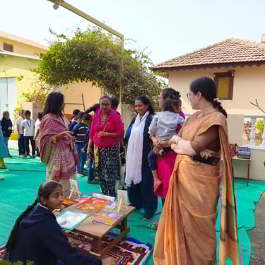 The day began with Deep Pragatya, symbolizing wisdom, learning, and divine inspiration. Students presented models, charts, and demonstrations explaining the deeper meanings behind Maa Durga’s weapons and divine form, as well as Lord Ganpati’s unique symbolism of intellect, wisdom, and prosperity. Through interactive displays and thoughtful explanations, students showcased how ancient symbolism carries eternal values for discipline, knowledge, and spiritual growth. Their active participation made the fair both educational and inspirational, blending tradition with inquiry.